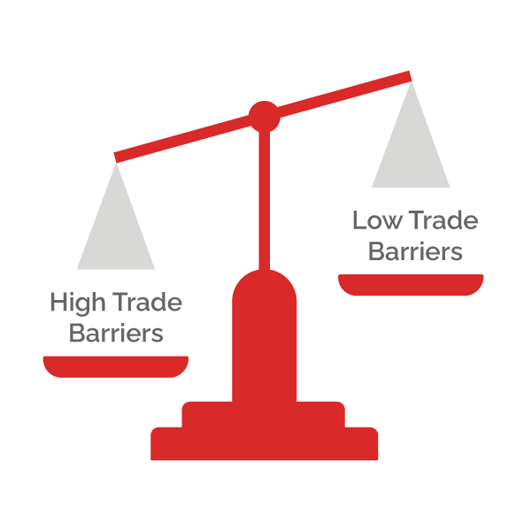 Lower trade barriers are strongly associated with prosperity & freedom; higher trade barriers with corruption & abuse of press.